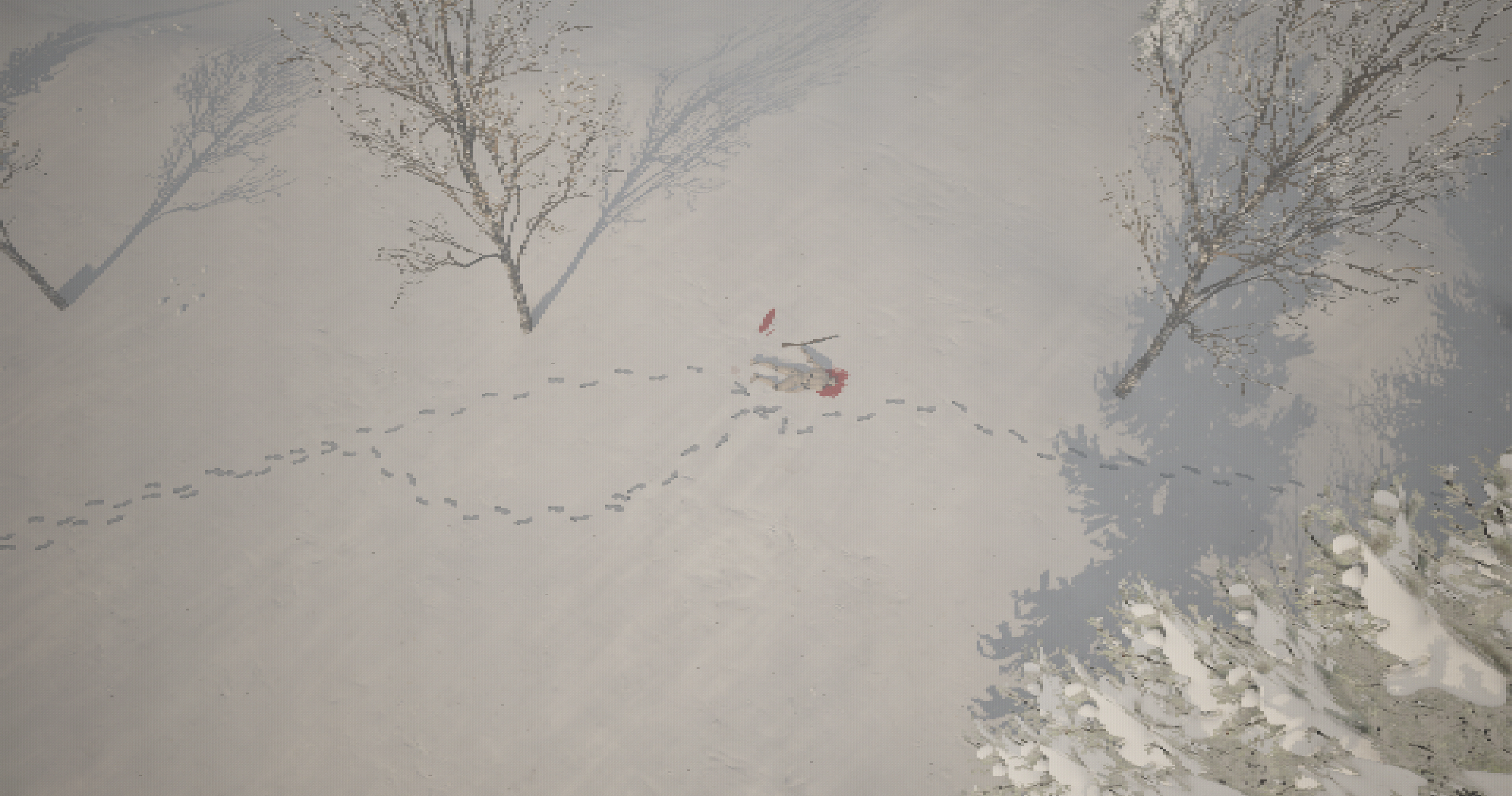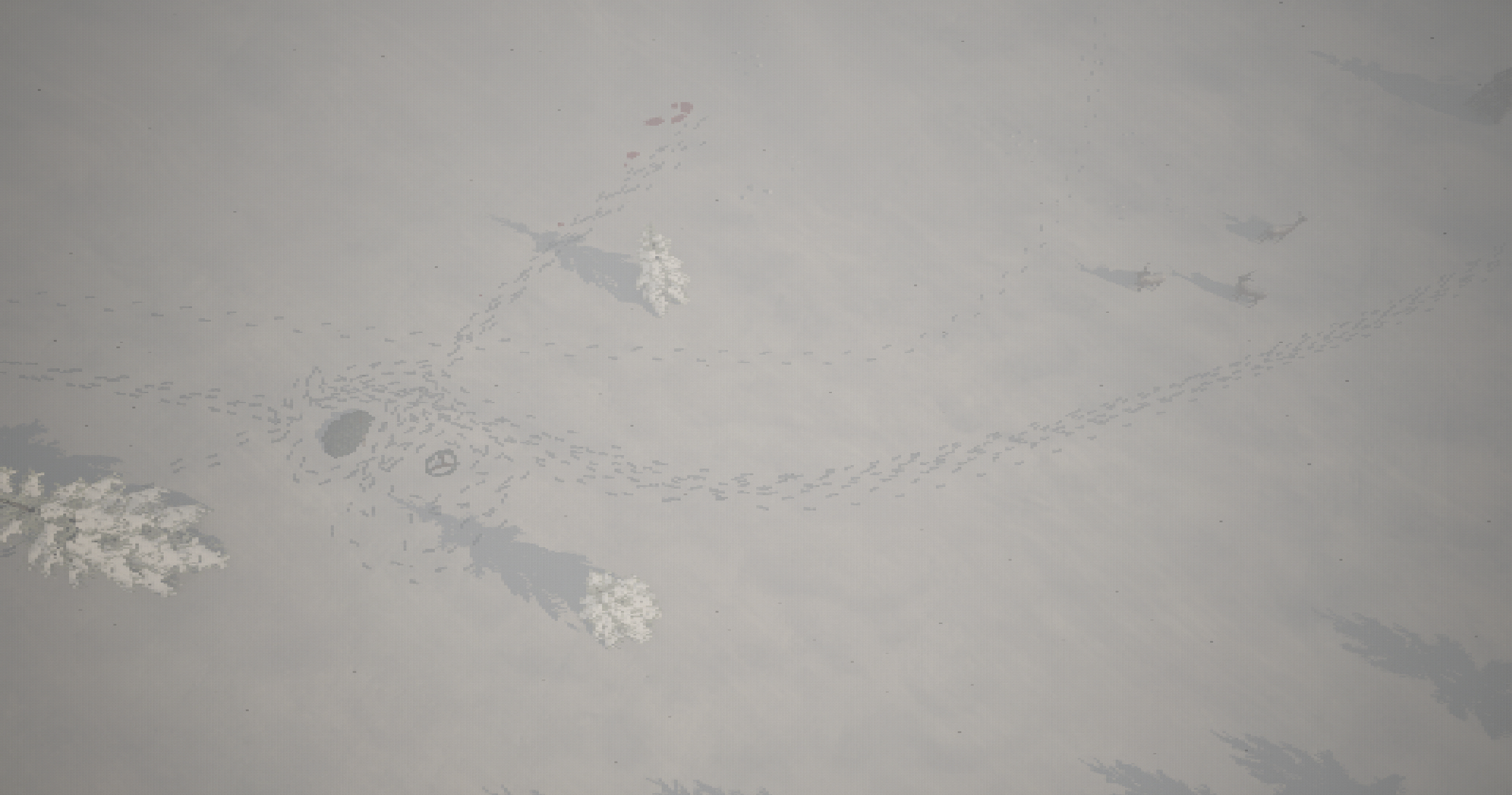 Love the atmosphere of this, and tracking the footsteps was a neat way to try parse what was happening. I unfortunately didn't solve it, because I lost track of some bodies and backtracking was slow enough I couldn't suss out what I missed. Really fun premise though, and I enjoyed getting to get up close to a deer just once.